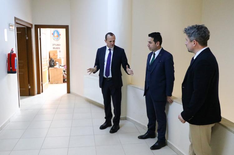 Çiftlikköy Belediyesi Kültür İşleri Müdürlüğü’nü ziyaret ederek personelle bir araya gelen Çiftlikköy Belediye Başkanı Adil Yele, Kültür Merkezi binasında incelemelerde bulunarak gerçekleştirilen çalışmalarla ilgili bilgiler aldı.