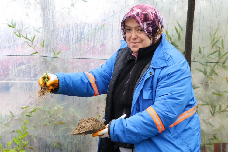 Her yıl çelikleme yöntemiyle üretilen yaklaşık 10 bin peyzaj bitkisinin, büyütülme sürecinin ardından ilçenin park ve yeşil alanlarında toprakla buluşturulduğunu söyleyen Belediye Park ve Bahçeler Müdürü Emine Yeşim Aras, “Kış dönemi çalışmalarımız kapsamında pittosporum (yıldız çalısı), gül, kartopu ve fırça çalısı gibi sert ve yarı odunsu dış mekan bitkilerinin çeliklemelerine ağırlık verdik. Bu dönemde köklenme sürecini tamamlayan yaklaşık bin bitkimizi daha büyük saksılara aktarıyoruz. Çeliklendirme, köklendirme ve saksılama işlemlerimiz yıl boyunca ihtiyaca göre peyderpey devam ediyor. Böylece bahar döneminde yaklaşık 10 bin kök bitkimizi peyzajda kullanmak üzere hazır hale getirmiş olacağız” diye bilgi verdi.