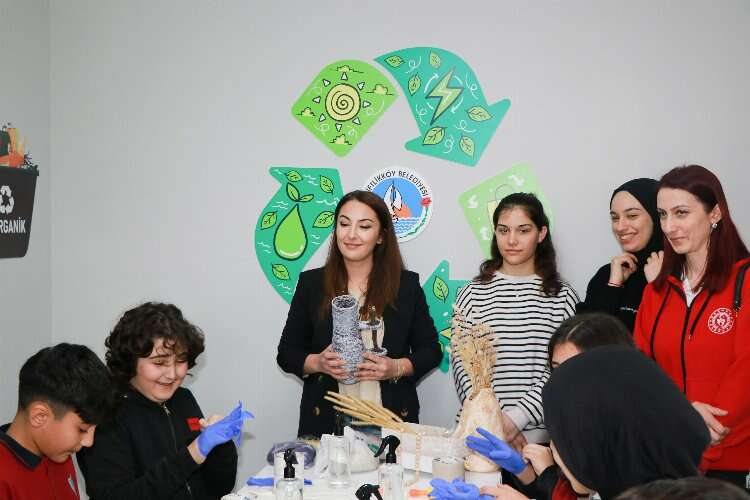 Çiftlikköy’de yaşayan ve aynı zamanda influancer olan Paper Pulp Art (kağıt hamuru) Sanatçısı Şeyma Varol, geri dönüşüm merkezinde düzenlenen atölye çalışmasında gençlere kağıt hamuru hazırlamayı ve üretilen kağıt hamurunu çeşitli objelerle birleştirmeyi öğretti.