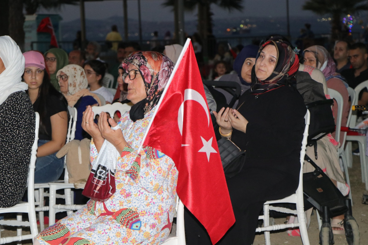 Bursa Mehteran Takımı, tarihi marşlardan oluşan repertuarı ile izleyenlerden büyük alkış alırken, alandaki vatandaşlara dondurma, helva ve çorba ikramları da gerçekleştirildi. 15 Temmuz yıl dönümü etkinlikleri gece 00.13’te Çiftlikköy Müftülüğü imamları tarafından okunan selalarla sona erdi.
