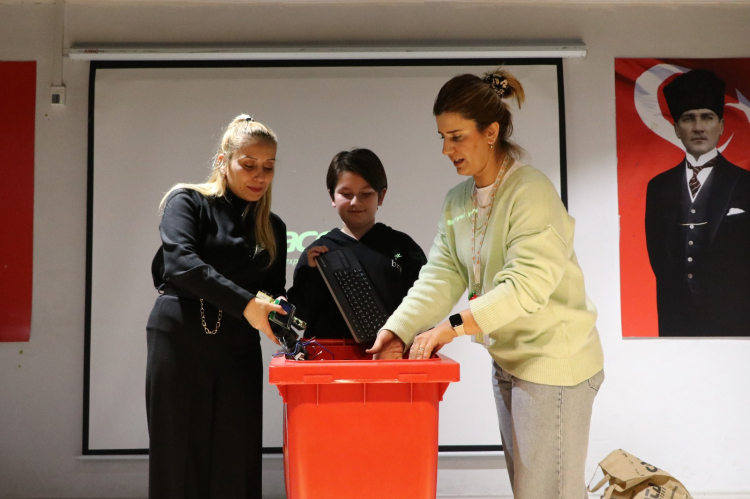 Birey Okulları Konferans Salonu’ndaki etkinliğe katılan öğrenciler, evlerinden getirdikleri elektronik atıkların yanı sıra, okulda bulunan atıl ve çalışmayan elektronik malzemeleri Çiftlikköy Belediyesi İklim Değişikliği ve Sıfır Atık Müdürlüğü ekiplerinin getirdiği atık toplama kutusuna bırakarak sürece aktif olarak katıldı.