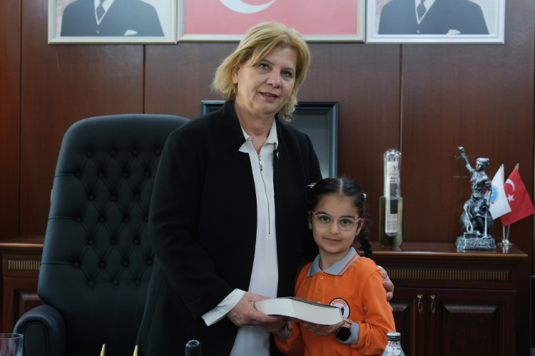Sultaniye Şehit Baçerettin İlkokulu öğrencileri Melis Özşahin ve Alim Beyazıt Sönmez, Okul Müdürü Alkan Çelik ve Sınıf Öğretmeni Murat Peynirci eşliğinde Çiftlikköy Belediyesi’ni ziyaret etti.