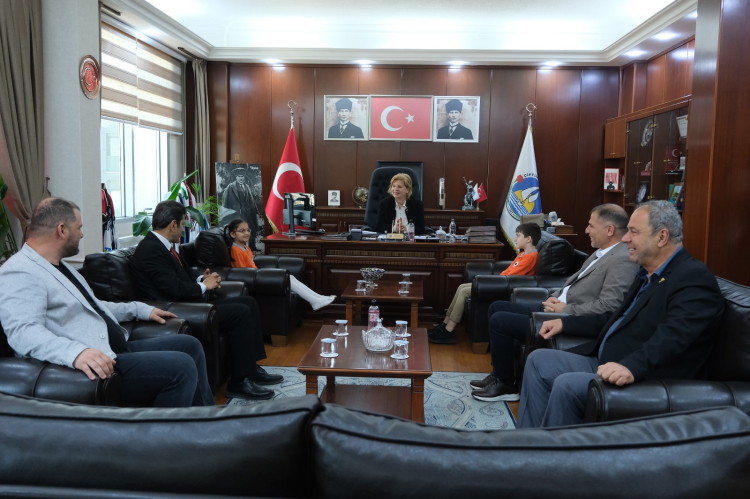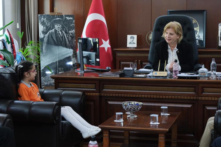 Belediye Başkan Vekili Nilüfer Dilek ve Belediye Meclis Üyesi Mustafa Dağ tarafından karşılanan öğrenciler, başkanlık makamında ağırlandı.