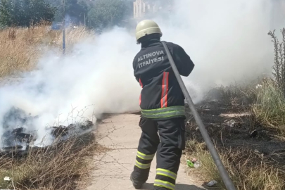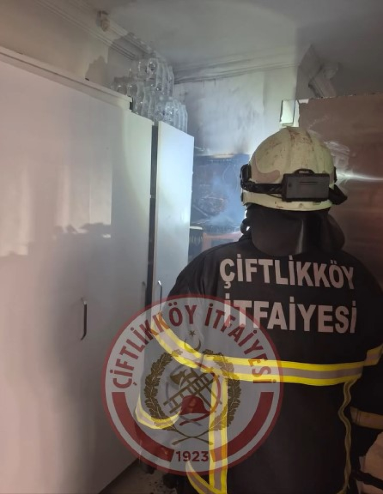 İhbar üzerine adrese gelen Çiftlikköy Belediyesi İtfaiye Müdürlüğü ekipleri yangına müdahale etti.
