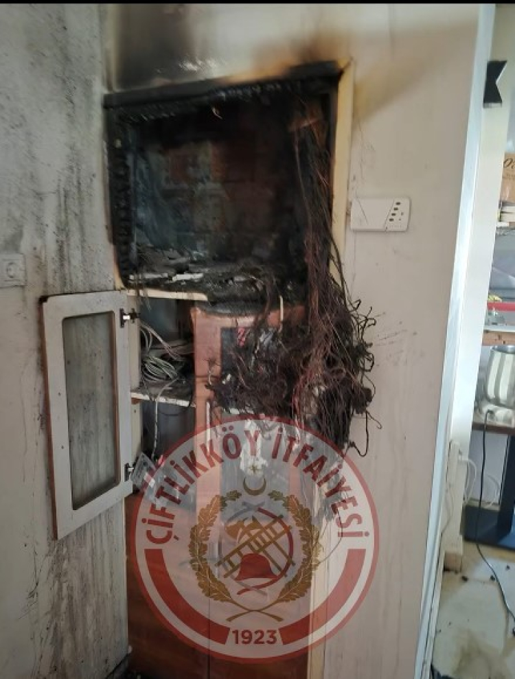 Çiftlikköy’de bir işletmenin elektrik panosundan yangın çıktı