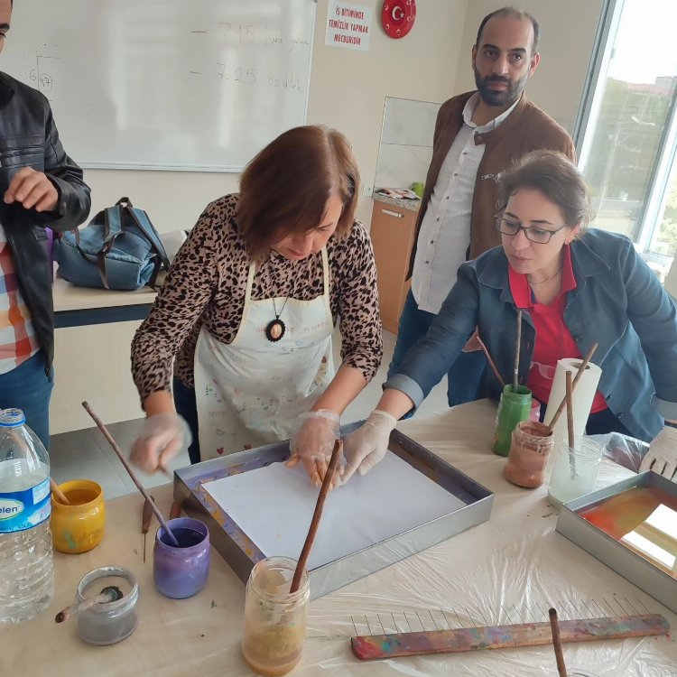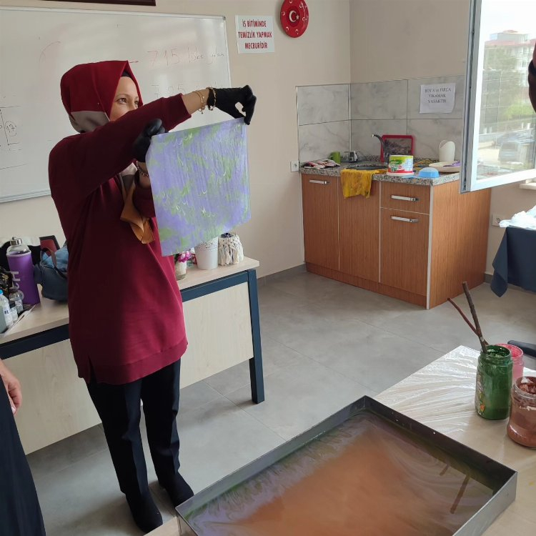 Çiftlikköy'de ebru sanatı kadınlardan büyük ilgi gördü