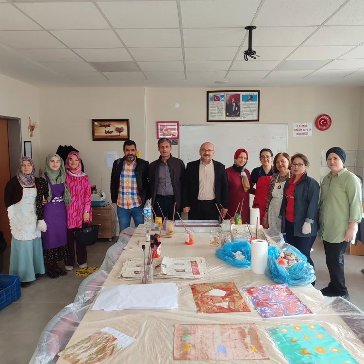 Bu çerçevede Ebru Kursu'nu ziyaret eden Çiftlikköy Halk Eğitim Müdürü Bahadır Kahraman da kurs eğitmenlerinden bilgiler aldı. Kursiyerlerle de sohbet eden Kahraman, ebrunun Osmanlı döneminden günümüze uzanan çok değerli bir sanat dalı olduğuna dikkat çekti. Son yıllarda bu sanata olan ilginin de arttığına değinen Kahraman, açılan kursların gördüğü ilgiden son derece memnun olduğunu ifade etti.