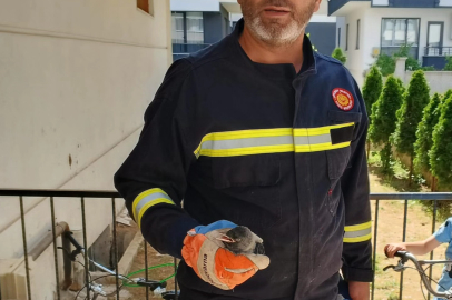 Çiftlikköy’de havalandırma boşluğuna düşen yavru kuşu kurtardılar