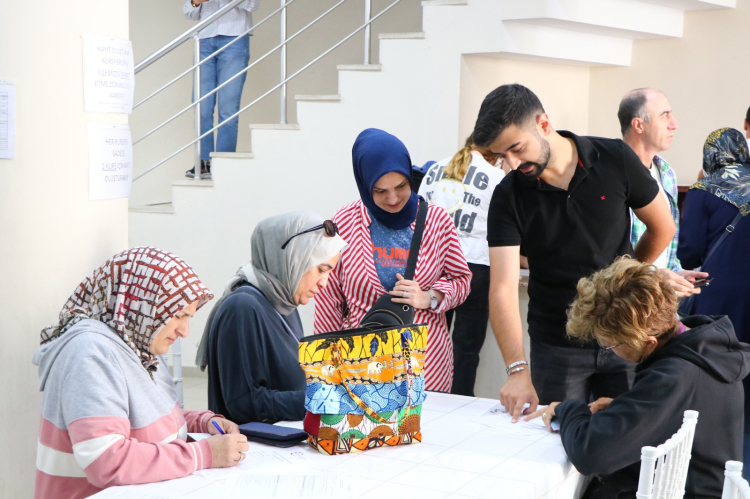 Yüzlerce Çiftlikköylü, Kültür Merkezi’nde kendileri veya çocuklarını kayıt ettirmek istedikleri kurslar için form doldurdu.