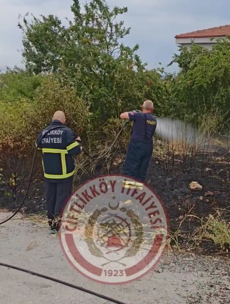 İhbar üzerine olay yerine intikal eden Çiftlikköy Belediyesi İtfaiye Müdürlüğü ekipleri yangına müdahale etti.
