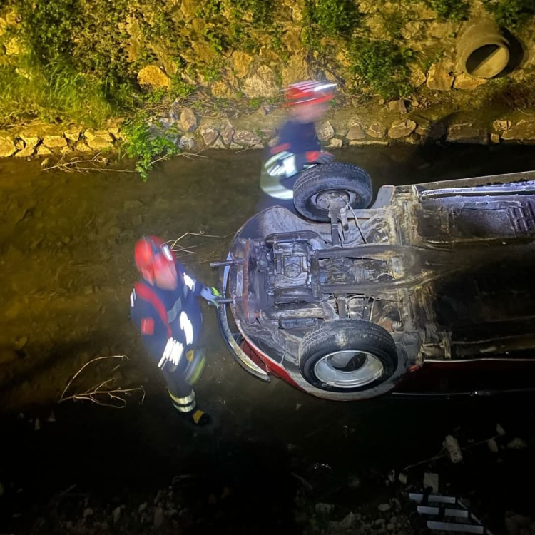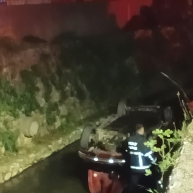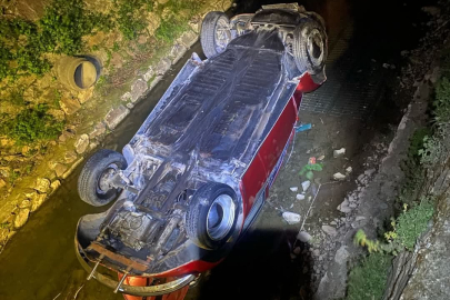 Alınan bilgiye göre arızalanan otomobil Kazımiye Deresine uçarak ters döndü.