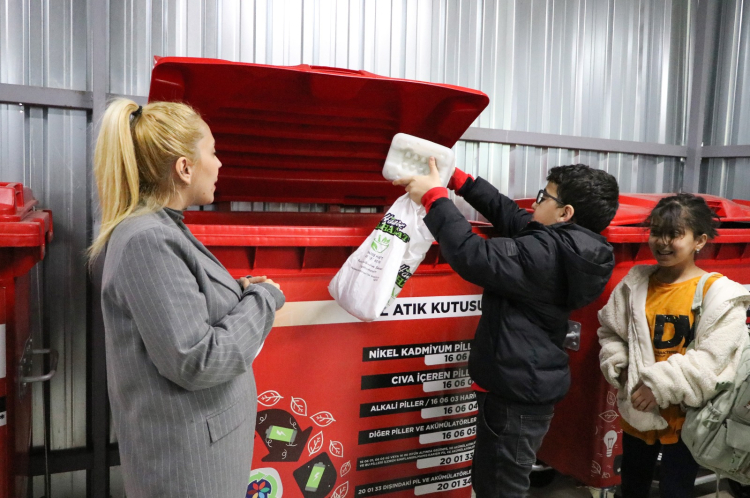 Öğrenciler, Atık Getirme Merkezi’ni de gezerek, atıkların toplanmasından ayrıştırılmasına ve yeniden ekonomiye kazandırılmasına kadar geçen süreci yerinde inceleyerek bilgi edindi.