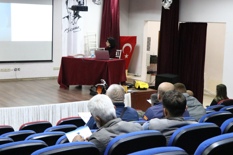 İş Sağlığı ve Güvenliği Uzmanı Hatice Güner tarafından verilen eğitimde, yüksekte çalışma sırasında karşılaşılabilecek riskler, ilgili mevzuatlar, kişisel koruyucu donanımların seçimi ve doğru kullanımı, güvenli bağlanma teknikleri ile acil durum ve kurtarma yöntemleri detaylı şekilde ele alındı. Güner, emniyet kemeri, konumlandırma halatları ve karabina gibi ekipmanların doğru kullanımını uygulamalı olarak göstererek personelin dikkat etmesi gereken noktaları aktardı.