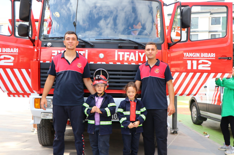 Öğrencilerden bazıları makaralı itfaiyeci sandalyesini denerken, bazıları da koruyucu itfaiyeci giysileriyle yangın söndürme aracına binerek siren çaldı. Eğlenceli bir etkinlik günü geçiren öğrenciler, itfaiyeci ağabeyleriyle günün anısına fotoğraf da çektirdi.