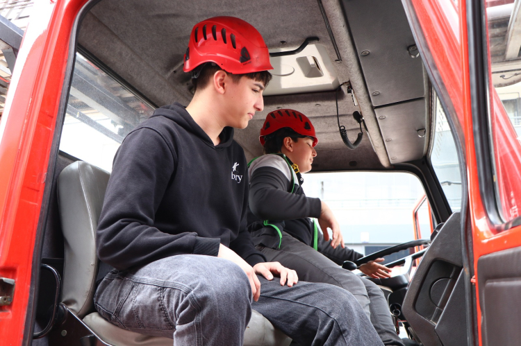 Manuel hidrolik kesici ayırıcı, şarjlı ve benzin tahrikli kesici ayırıcılar, ipli kurtarma mekanizmaları, kurtarma tripodu ve endüstriyel drone gibi Çiftlikköy İtfaiyesi’nin kullandığı profesyonel malzemeleri inceleyen öğrenciler, itfaiye araçlarına da binerek hatıra fotoğrafları çekildi.
