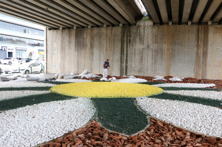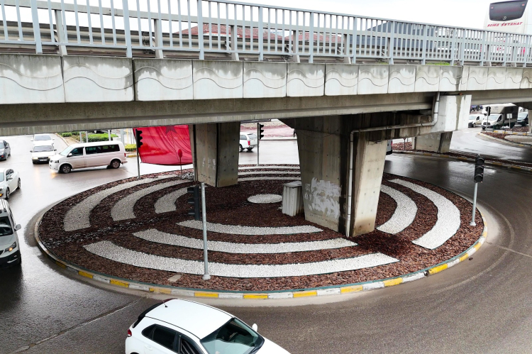 Çiçek ve daire formunda tasarlanan desenlerle hem görsel bütünlük sağlandı hem de kavşağın estetik değeri artırıldı.