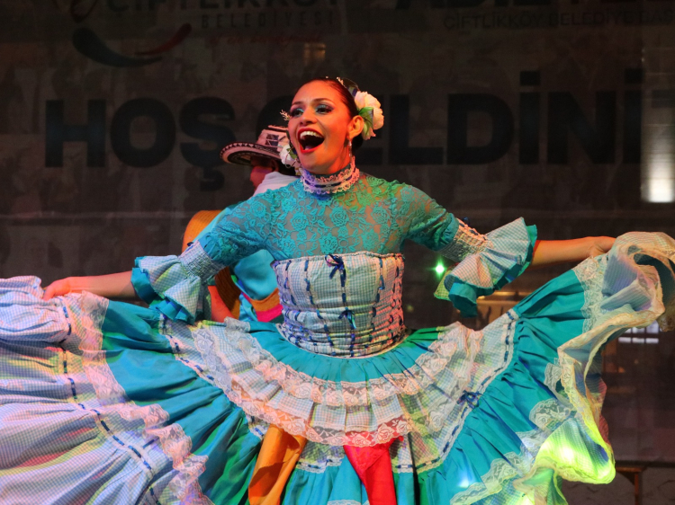 Bulgaristan ekibinin gösterisiyle devam eden Çiftlikköy özel gecesinde Makedonya, Endonezya, Kuzey Kıbrıs Türk Cumhuriyeti, Kolombiya ve Panama’dan gelen dansçılar, rengarenk kostümleri ve ülkelerine özgü yerel danslarıyla Çiftlikköylülerden büyük alkış aldı.