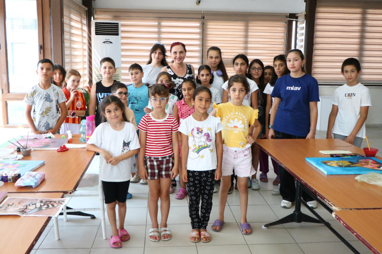 Belediye Kültür Merkezi’nde haftada dört günü 8 saat verilen resim kursuna katılan minik ressam adayları, Resim Öğretmenleri Elif Akbaş, Kafiye Yiğittürk ve Dilber Demir’den, resim sanatının inceliklerini öğreniyor.