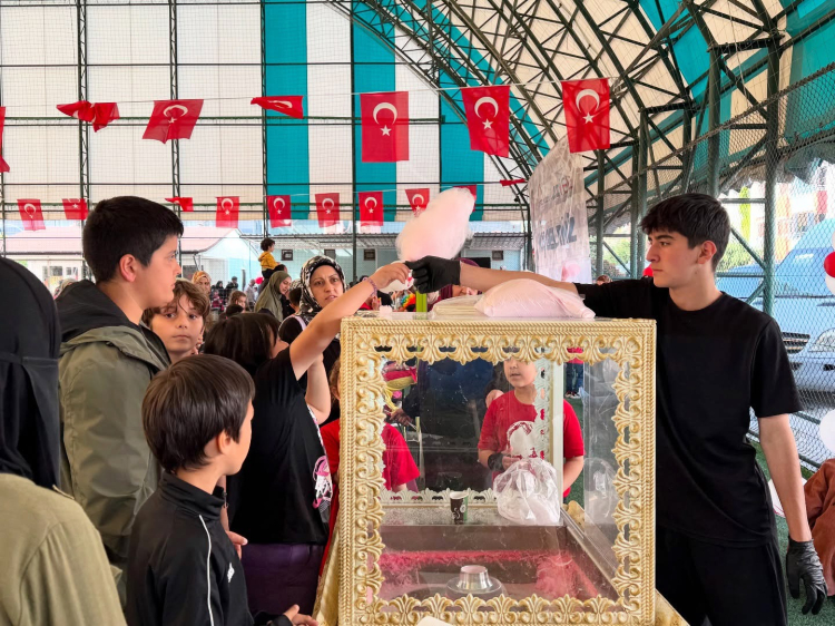 Pamuk şeker ve patlamış mısır ikramlarıyla da şenliğin keyfi katlandı.