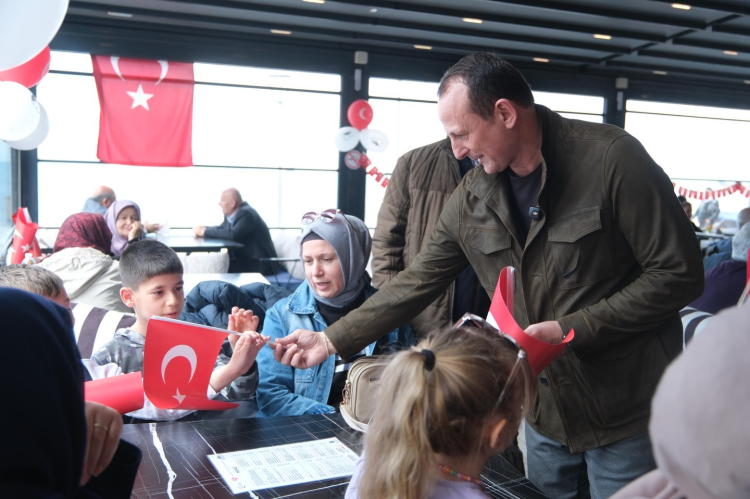 Başkan Yele, belediye sosyal tesisleri Engelsiz Kafe, Bayraktepe ve Saklı Bahçe’yi de ziyaret ederek çocuklara şeker ikramları yaptı ve Türk bayrağı hediye etti.