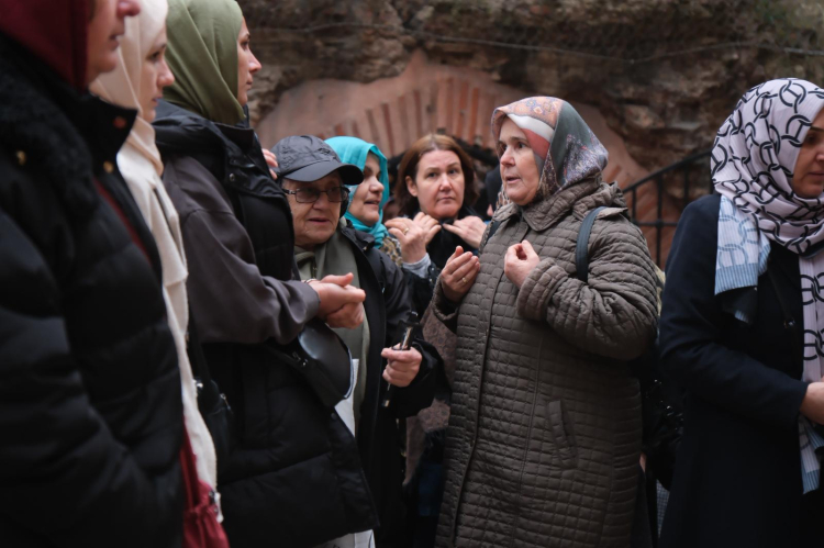 Çiftlikköylü kadınlar, caminin tarihsel geçmişi ve mimari özelliklerine dair yapılan bilgilendirmeler sonrasında iftarlarını açarak akşam namazlarını da Eyüp Sultan Camii’nde kıldı.