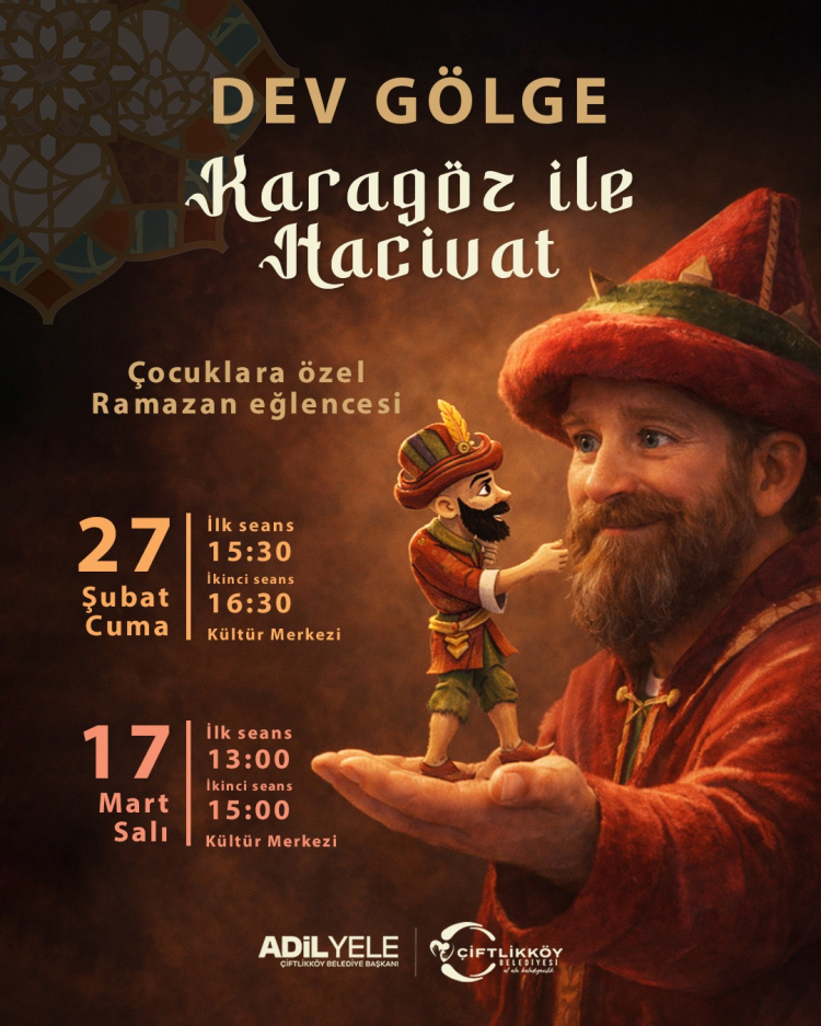 Ramazan ayının geleneksel eğlencelerinden Karagöz ile Hacivat, bu yıl Çiftlikköy’de ‘dev gölge’ formatıyla sahneye çıkıyor. Kültürel mirasımız olan gölge oyunu, 27 Şubat ve 17 Mart olmak üzere iki farklı günde ikişer seans şeklinde Belediye Kültür Merkezi’nde sahnelenecek.
