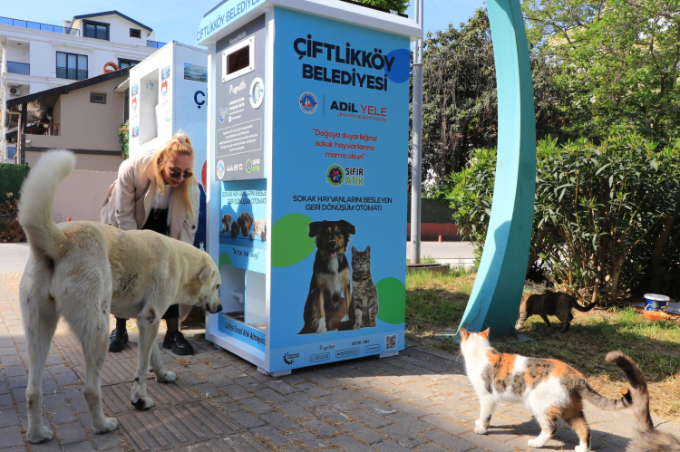 Çiftlikköy Belediyesi’nin 2024 yılında devreye aldığı otomatlara atılan toplam 120 bin adet geri dönüştürülebilir atık, sokak hayvanları için mama ve su desteği olarak geri döndü.