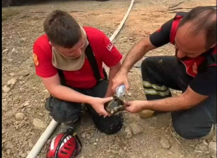 Kahraman itfaiyecilerden alevlerin arasında kalan kaplumbağaya şefkat eli