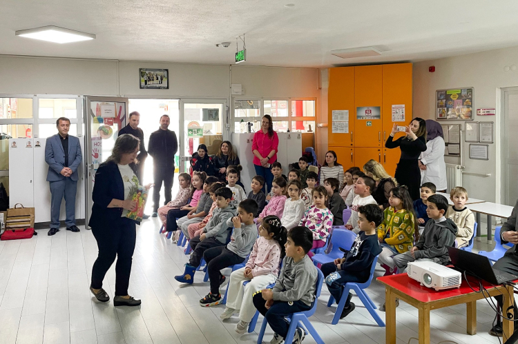 Çiftlikköy Kaymakamı Ali Ada, Çiftlikköy Belediye Başkanı Adil Yele ve İlçe Milli Eğitim Müdürü Zeki Sitar’ın da ilgiyle izlediği etkinliklerde Yücel, ‘Vera ve Lena - Doğada Neler Oluyor?’ adlı kitabı üzerinden depremi ve depreme neden olan süreçleri minik öğrencilere aktardı.