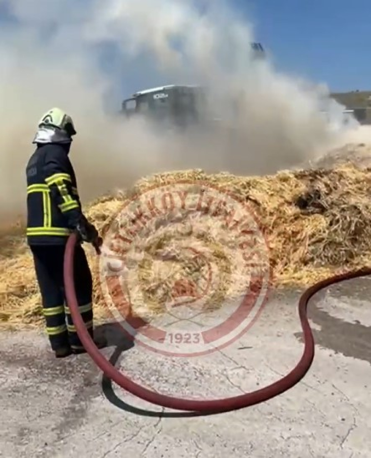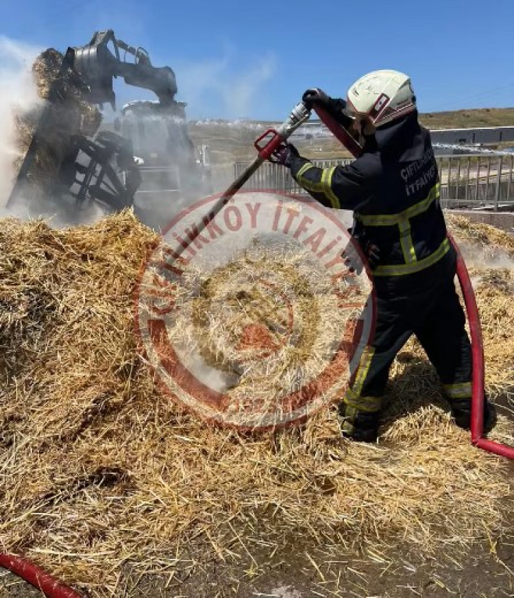 İhbar üzerine olay yerine intikal eden Çiftlikköy Belediyesi İtfaiye Müdürlüğü ekipleri tutuşan samanları traktörün kasasından tahliye etti.