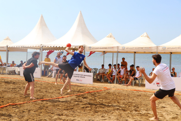 Plaj hentbolu coşkusu Çiftlikköy sahilinde yaşandı