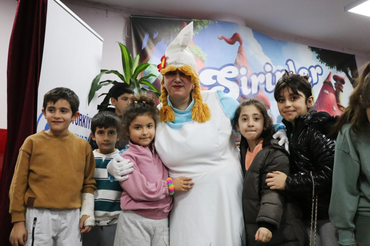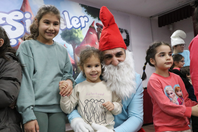Şirin Baba ve uykucu şirinin kötü kalpli cadıyı iyilikle tanıştırmasını konu alan interaktif oyunu büyük bir keyifle izleyen Çiftlikköylü çocuklar, oyun sonunda da oyunun kahramanlarıyla anı fotoğrafları çekilmeyi ihmal etmedi.