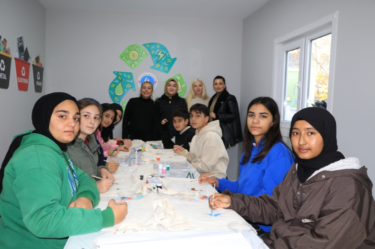 Çiftlikköy Belediyesi İklim Değişikliği ve Sıfır Atık Müdürü Emine Yeşim Aras tarafından karşılanan öğrenciler, Sıfır Atık Merkezi’ndeki çalışmalar hakkında bilgiler alırken, denizden elde edilen yosunlar ve evsel atıklarla üretilen kompost toprağının nasıl yapıldığını yerinde gördü. Sıfır Atık Merkezi bünyesinde oluşturulan ve tıbbi aromatik bitkilerin yetiştirildiği hobi bahçesini de ziyaret eden öğrenciler, daha sonra bez çanta boyama atölyesi yaparak, bez çanta üzerinde ürettikleri desenleri boyadılar.