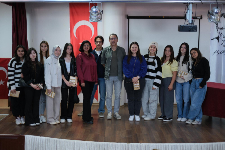 Eskiz yolculuklarında kalabalıklar içinde evde olma hissinin bir kent gezgini, gözlem yapan bir flanör gibi hissettiğini kaydeden Uçar, söyleşi esnasında izleyicilerden gelen soruları da yanıtladı. Söyleşi sonrasında Belediye Kültür ve Sosyal İşler Müdürü Ali İhsan Demirhan, Yazar Ertuğ Uçar’a anı tabağı hediyesini takdim etti.
