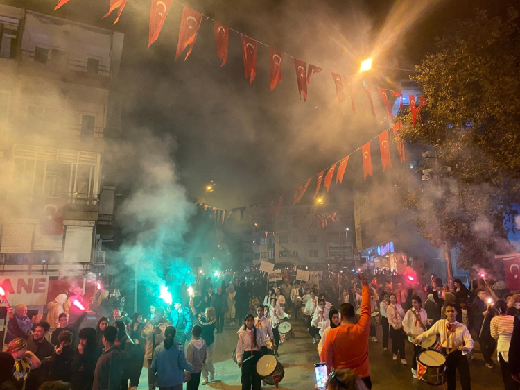 Bando takımı eşliğinde bayraklarla ve meşalelerle gerçekleşen fener alayı yürüyüşünün son bulduğu Cumhuriyet Meydanı’nda, Caner Mısırlı dj performansı sergiledi ve vatandaşlar coşku dolu anlar yaşadı. Eğlence dolu anlar yaşandığı, Hüdaverdi Aydın Ortaokulu tarafından hazırlanan ‘Cumhuriyet’ konulu videonun ekrandan izletildiği meydanda, Belediye Başkanı Avni Kurt günün anlam ve önemine binaen konuşma yaptı ve Cumhuriyetin değerlerini vurgulayarak, “Cumhuriyetimiz, özgürlük ve eşitlik mücadelesinin en güzel sonucudur. Bizler, bu mirası korumak ve yaşatmakla yükümlüyüz,” dedi.