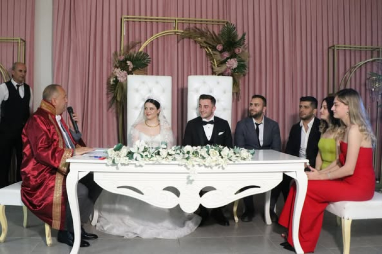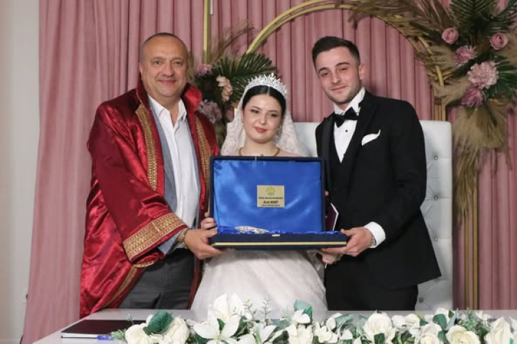 Çınarcık Belediye Başkanı Avni Kurt, genç çift Şevval ve Burhan'ın hayatlarını birleştirme kararına şahitlik ederek nikah akitlerini gerçekleştirdi.
