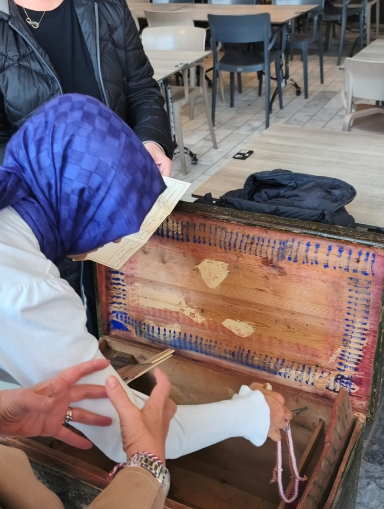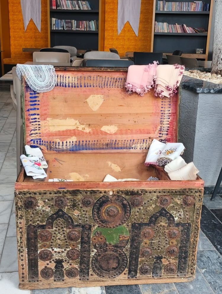 İlçenin önemli sosyal mekânlarından biri olan Çınaraltı Aile Çay Bahçesi’nde düzenlenen buluşmada Çınarcıklı kadınlar ile araştırma ekibi bir araya gelerek aile sandıkları ve geleneksel el sanatlarına dair bilgiler paylaştı.