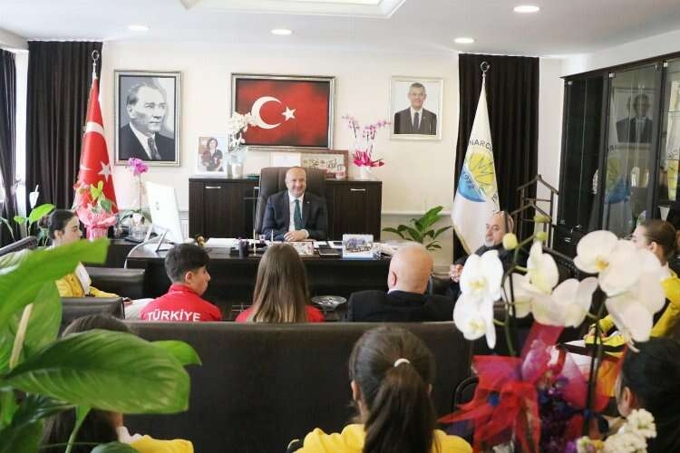 Marmara’nın İncisi Çınarcık Belediyesi’nin, Çınarcık Belediyespor Kulübü Karate Antrenörü Mustafa Canan Taş ve beraberinde Çınarcık Belediyespor Kulübü Karate Takımı sporcuları, başkanlık makamına ziyarette bulunarak, Belediye Başkanı Avni Kurt’a hayırlı olsun dileklerinde bulundu.