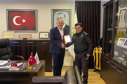 Çınarcık İlçe Emniyet Müdürü Fatih Çingi, Çınarcık Belediye Başkanı Numan Soyer'i makamında ziyaret ederek emniyet binasına yaptığı desteklerden dolayı teşekkür plaketi takdim etti