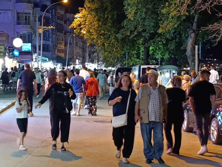 İlçenin cadde ve meydanları gün boyu yoğunluk yaşarken, gece saatlerinde bile hareketlilik sürdü. Tatilciler, gün boyu sahilde vakit geçirip denizin tadını çıkardı. Plajlarda renkli görüntüler oluşurken, serin sulara giren vatandaşlar bayramın keyfini güneş ve deniz eşliğinde yaşadı. Akşam saatlerinde ise sahil boyunca yürüyüş yapan kalabalıklar ilçeye canlılık kattı.