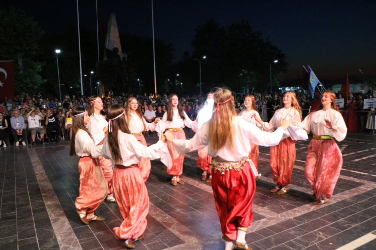 Azerbaycan’dan Kırım’a, Kosova’dan Kerkük’e uzanan geniş bir coğrafyadan gelen kardeş topluluklar; dansları, müzikleri ve kültürel renkleriyle meydanı adeta bir şölene çevirdi.