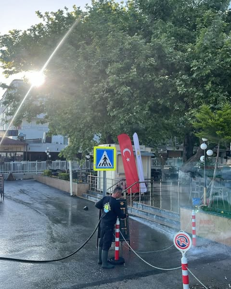 Yağmurun getirdiği olumsuzlukları en aza indirmek ve vatandaşların günlük yaşamını aksatmamak adına harekete geçen ekipler, su tankerleriyle cadde ve sokakları titizlikle yıkayarak yağış nedeniyle oluşan çamur ve diğer atıkları temizledi.