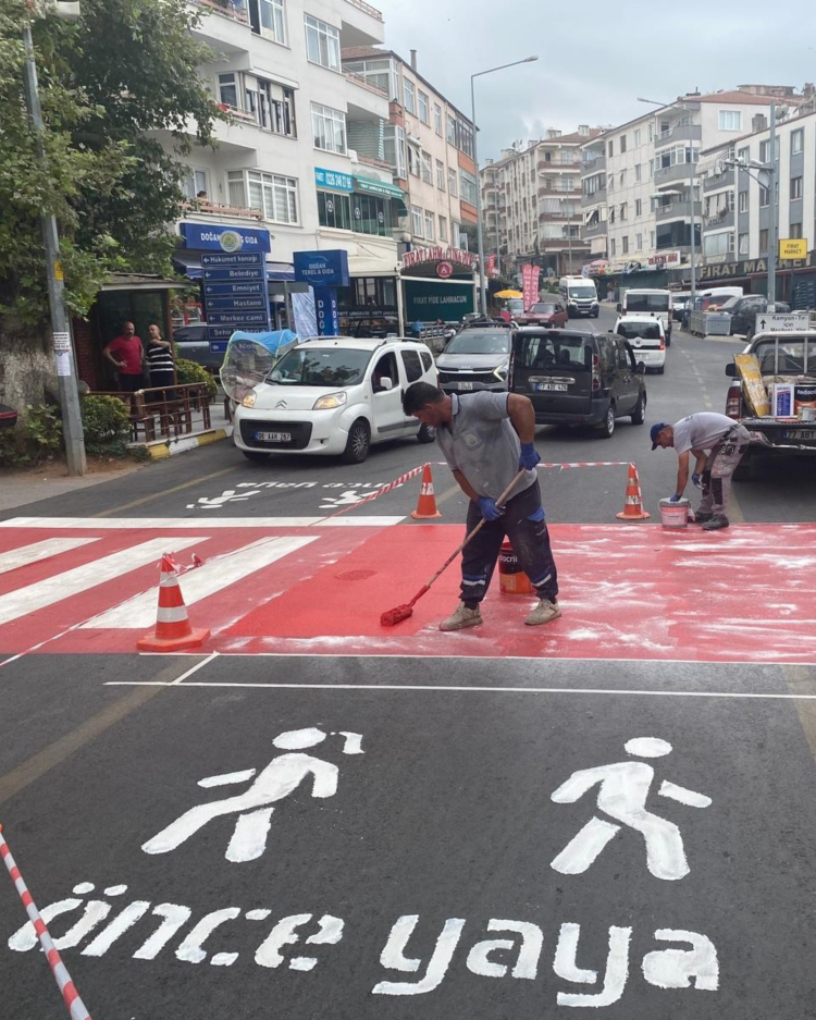 Ekipler, aynı zamanda da yoğun kullanılan caddelerdeki yaya geçitlerini yenileme çalışması yürütüyor. Daha görünür hale gelen geçitlerle, hem sürücüler hem de yayalar için güvenli bir trafik ortamı oluşturuluyor.