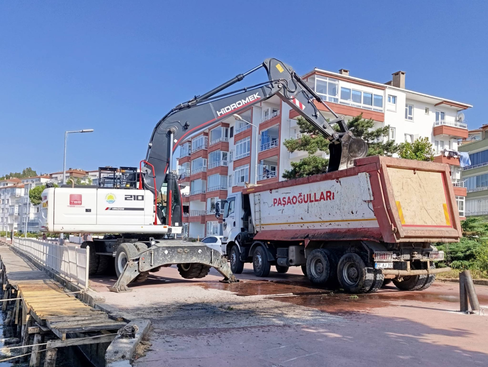 Çıkarılan yosunlar kamyon yardımı ile bölgeden uzaklaştırıldı.