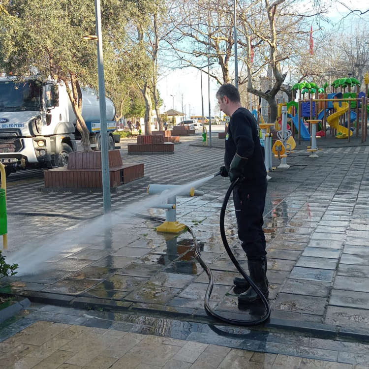 Ekipler yapılan çalışmalar kapsamında, park alanlarındaki zeminlerden oyun alanlarına kadar her noktayı titizlikle temizliyor.