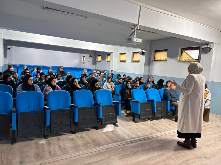 Çınarcık İmam Hatip Lisesi'nde, İlçe Vaizesi Elif Kul tarafından gençlere yönelik "Mahremiyet ve Nezafet" konulu bir konferans düzenlendi.