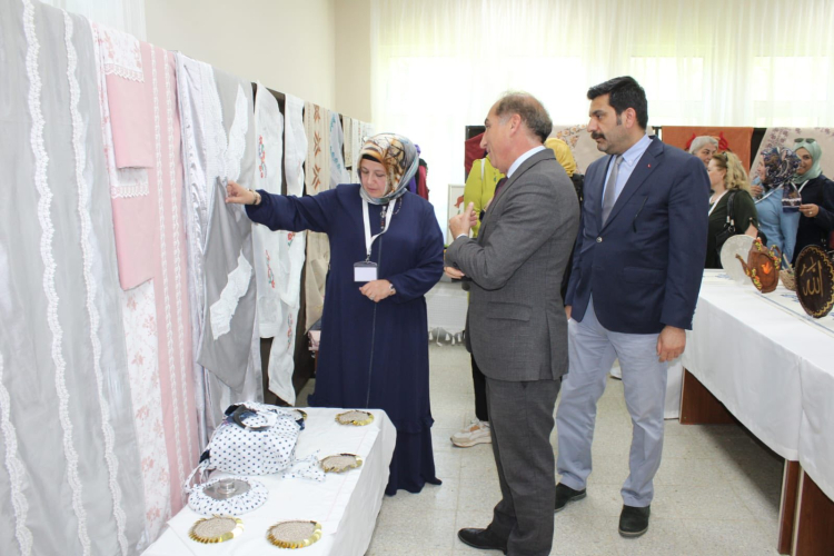 Katılımcılar, kursiyerlerin el emeği göz nuru eserlerini ilgiyle inceledi.