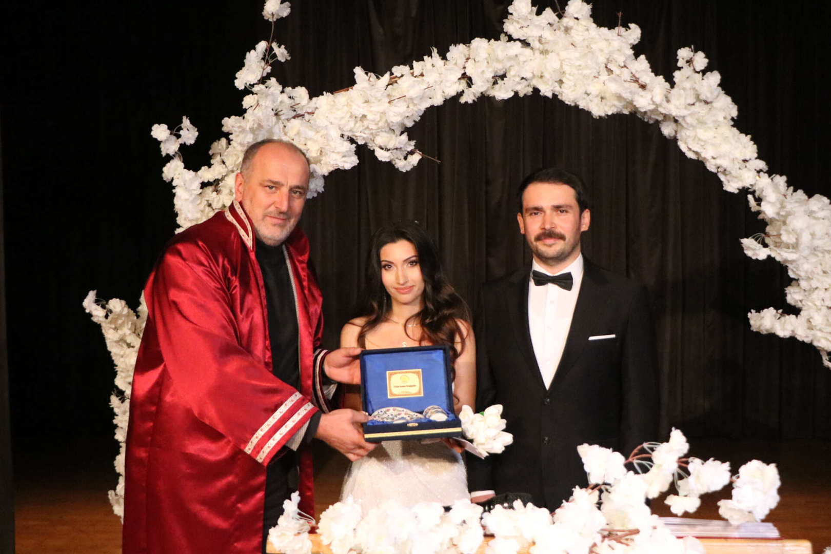 Başkan Soyer daha sonra evlilik cüzdanını Eftelya Çıtak'a teslim ederek, çifti tebrik etti.