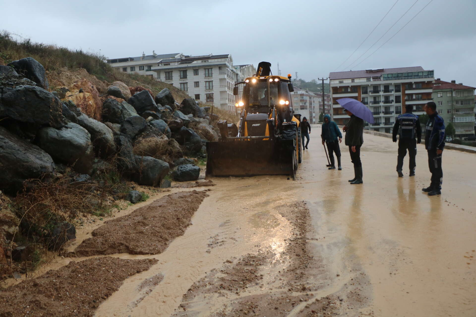Çınarcık’ta etkili yağış, toprak kaymasına sebep oldu. Poyraz Caddesi’nde kayan noktada dev kayalar, yolu kapattı. Vatandaşlar, büyük panik yaşadı. Olay yerine gelen Çınarcık Belediyesi ekipleri, kayan toprağı alarak yolu genişletmeye çalıştı. Ekipler, yola doğru kayan bölgede riski en aza indirmek için kontrollü bir şekilde çalışmalarını sürdürdü.
