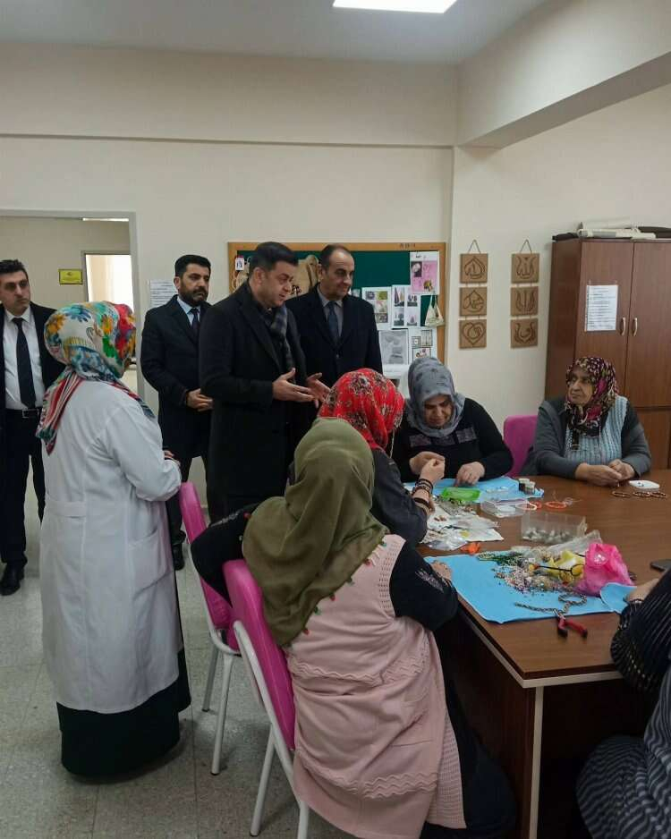 Köy halkının ihtiyaç ve talepleri doğrultusunda açılan kursları ziyaret eden Halil İbrahim Akmeşe, kursiyerlerin atölyelerde yaptığı çalışmalar hakkında bilgi aldı.